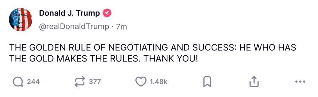 Het is ongeveer de helft van de uitstaande Amerikaanse staatsschuld. Kortom, zoveel is dat niet, want we weten allemaal dat een market cap niet de totale waarde is, van zodra de dinges beginnen te circuleren daalt het weer. Kortom, zelfs mochten de Amerikanen al het goud van de wereld hebben, dan kunnen ze niet eens de helft van hun staatsschuld ermee afbetalen. Trouwens er is geen kat in Europa meer die denkt dat de Amerikanen ook maar een duimbreed in de weg zouden leggen voor een Russische invasie. Dus dat drukkingsmiddel heeft hij verkwanseld. En Europa gaat nu zijn eigen schietgerief maken om de Russen welkom te heten he. Kijk naar Japan, aan wie hij een 100-jarige bescherming bood. Die hebben hem ook wandelen gestuurd. Amerika's bescherming is minder waard dan die van de lokale maffiabaas. Enorm veel verspild. Het was hun grootste troef. Laatst gewijzigd door patrickve : 21 april 2025 om 18:19. |