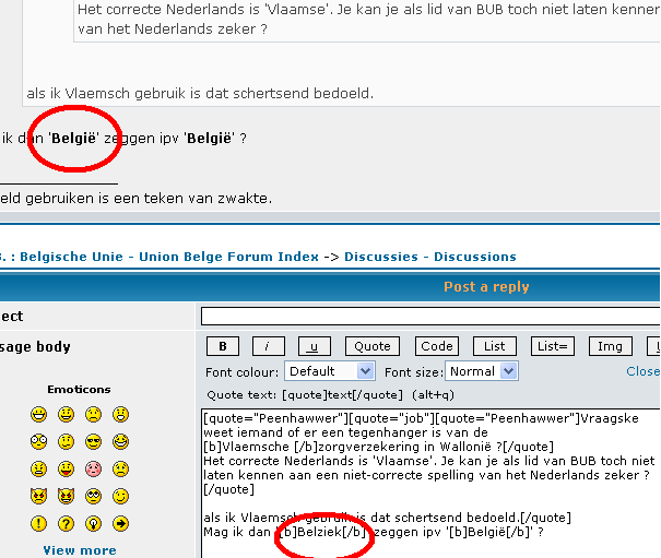Ik heb het dus ook gehad met jullie forum, Belgicisme wordt er gewoon belachelijk gemaakt door Yammine e.a. Ik wil daar zeker niet aan verbonden worden.