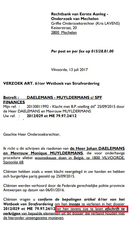Volgens de kamer is het onmogelijk om vast te stellen wie de oorspronkelijke aanvraag bij de onderzoeksrechter heeft ingediend - (zie 2 post's eerder, tweede inzet). Volgens mij staan de beide namen van de aanvragers (wij dus) duidelijk op het document, brief in onze opdracht opgesteld door ons advocatenkantoor en dus ook door deze ondertekend. Ondertussen zijn we twee jaar bezig om enkele documenten te bemachtigen - documenten die eigenlijk automatisch zouden moeten worden teruggestuurd naar diensten die, wegens het ontbreken van deze documenten, mensen hun huizen afpakken. Nog iets om over na te denken... De Kamer van inbeschuldigingstelling verklaart eigenlijk onomwonden dat de onderzoeksrechter toelating gegeven heeft aan onbekenden om in het strafdossier gaan te neuzen... Laatst gewijzigd door Johan Daelemans : 10 september 2017 om 09:08. |