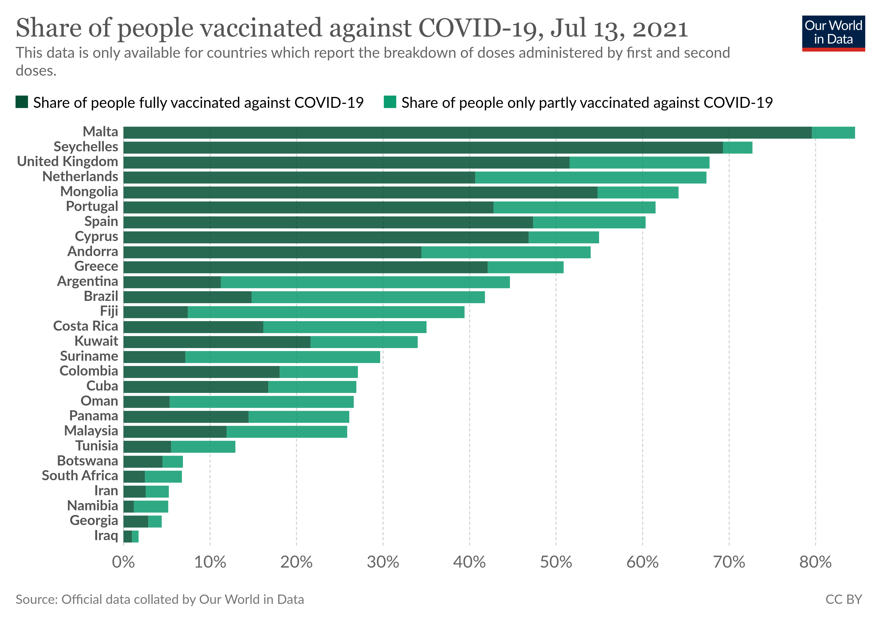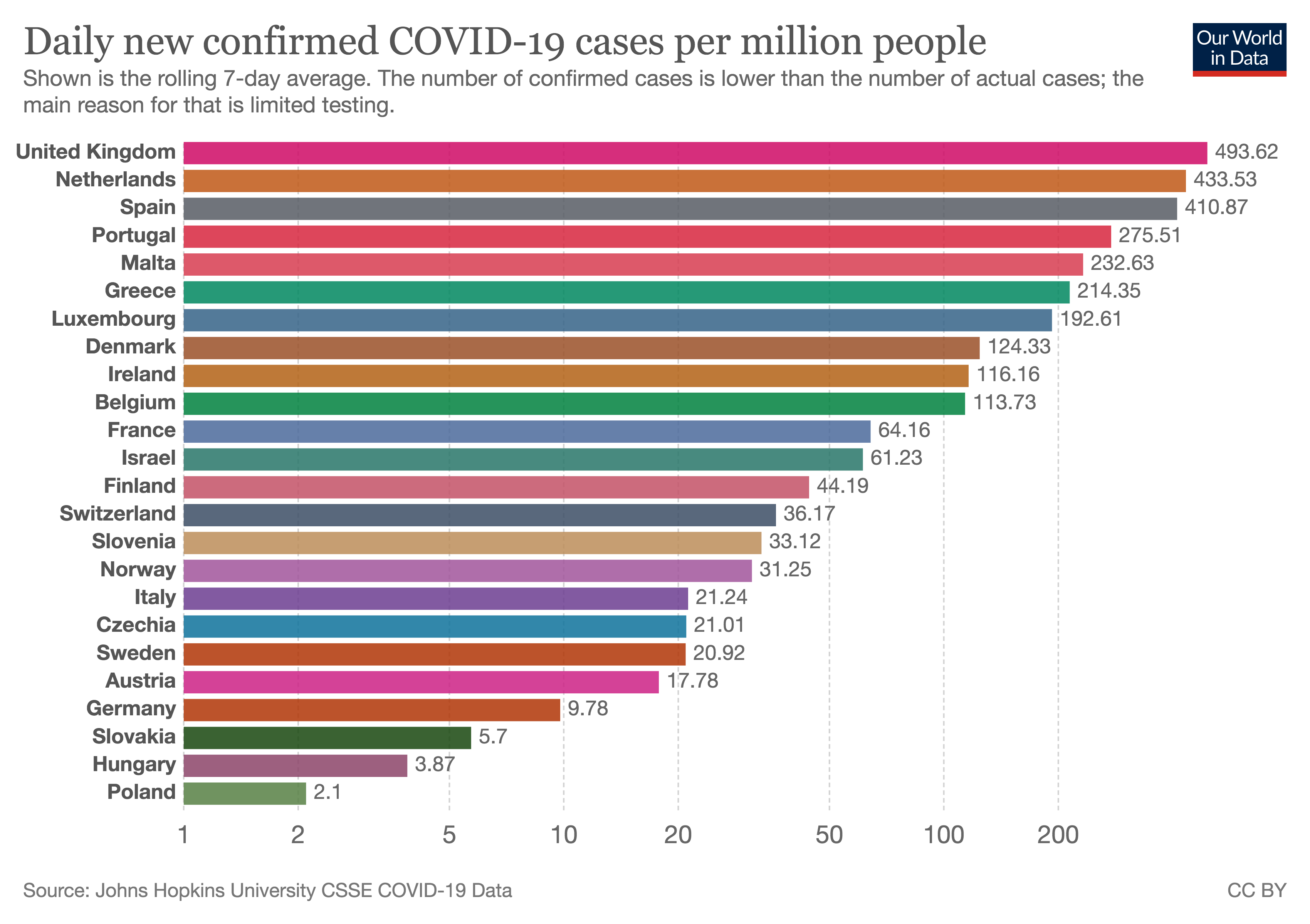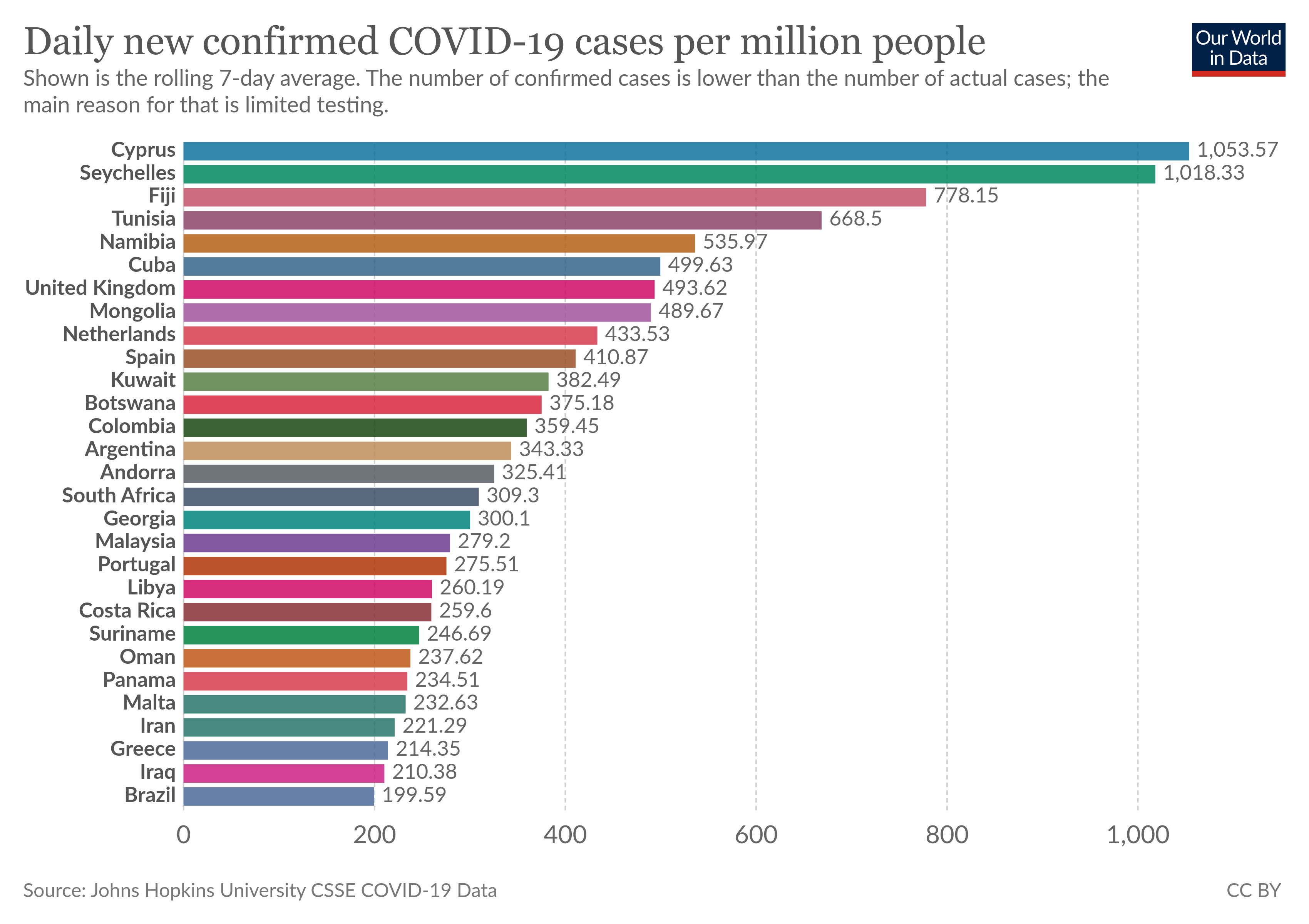 ![]() Wereldwijd de meeste dagelijkse nieuwe cases per miljoen inwoners, en hun vaccinatie toestand.
