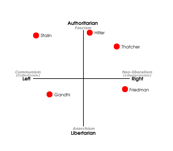 Economic Left/Right: -4.88 Social Libertarian/Authoritarian: -5.74 Vooral die vragen over religie en seks waren inkoppertjes. Kennelijk dacht de Dalai Lama daar ook zo over, want die staat van de beroemde figuren het dichtste bij mij. ![]() O, en terzijde: jammer genoeg kan je het plaatje alleen manipuleren om waardes binnen het gegeven spectrum te tonen, bij waardes erbuiten blijft hij toch gewoon op de zijkant staan: