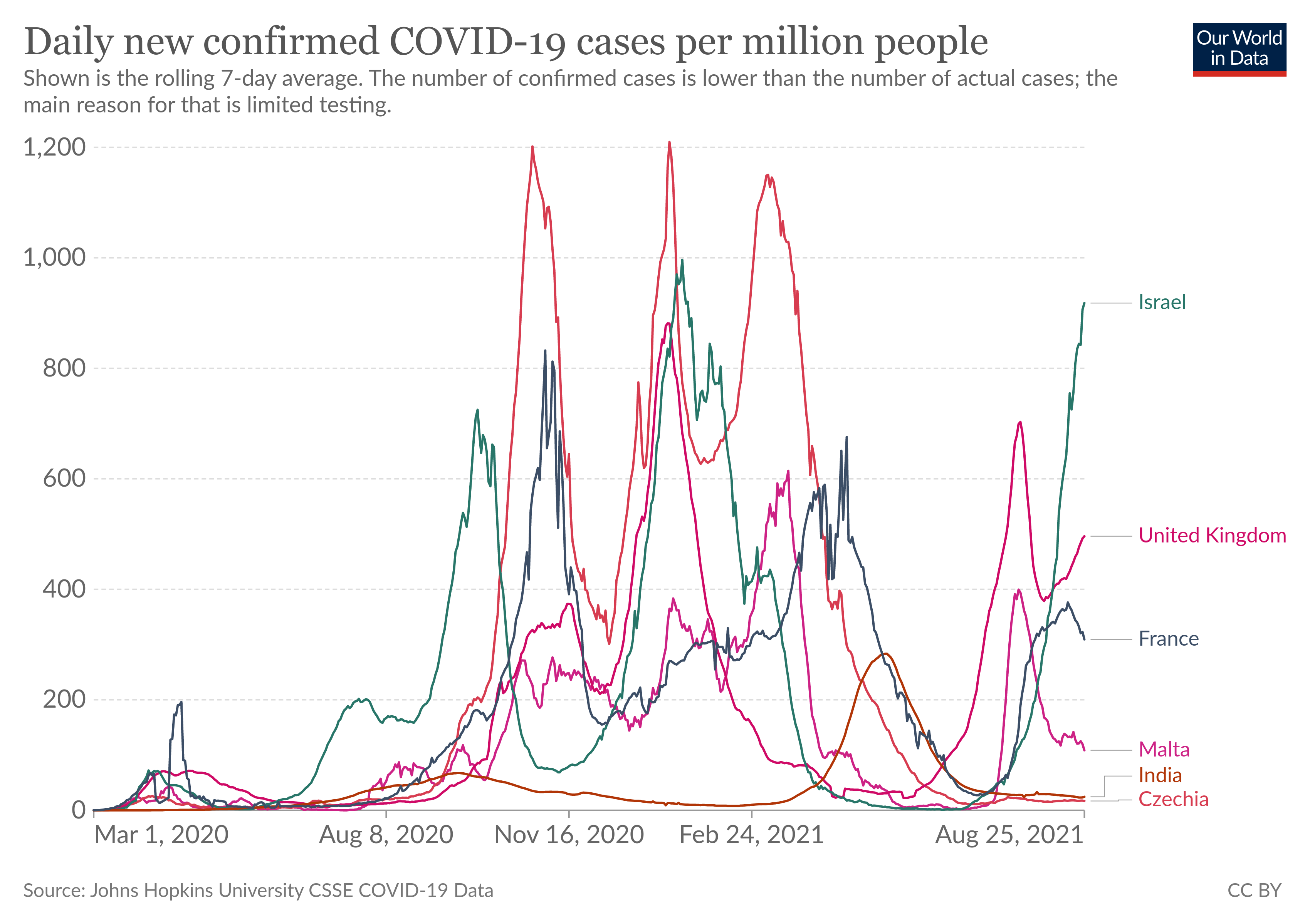 Israel heeft duidelijk geen enkel effect meer van zijn vaccin op besmettingen. Ze zitten even hoog nu als rond nieuwjaar. De twee landen die het essentieel al dan niet gewild laten waaien hebben, Tjechie en Indie, zijn zo plat als een vijg. Voorlopig zien we dat op het aantal doden, het vaccin nog wel een zekere factor werkt. Maar als je naar Israel kijkt, zitten ze ook weer zo ver niet meer van het aantal doden dat ze eerder hadden. Beeldt U nu in dat de varianten in oktober nog meer aan vaccin ontwijking doen, en het vaccin nog wat ouder is en minder werkzaam, en je krijgt een ideetje he... |