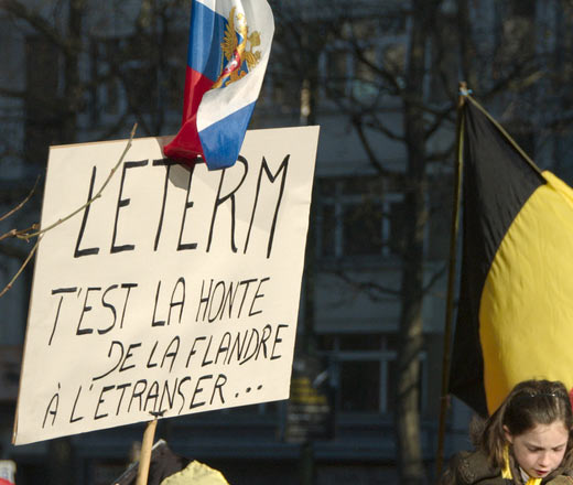 Haatslogan (in slecht Frans) tegen Leterme, gecombineerd met de Russische vlag (foto: Skender).