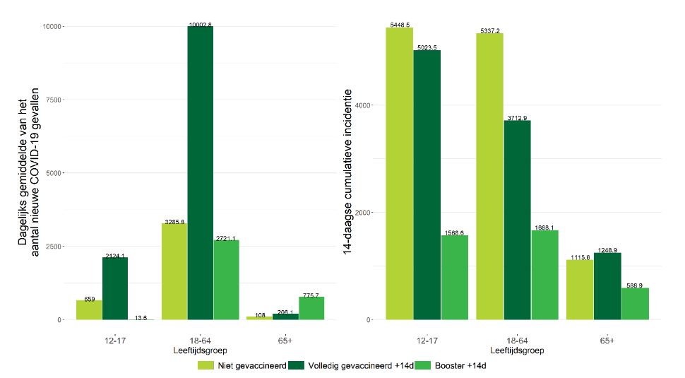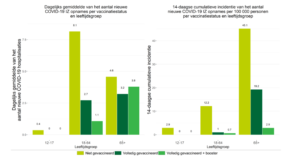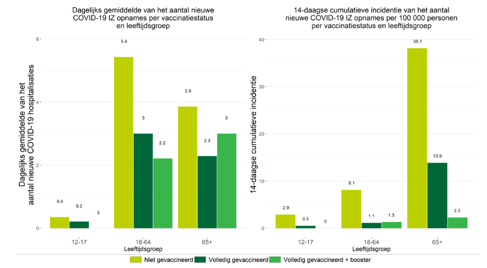 We vergelijken even de periode 20 december - 2 januari (vorige rapport) met de huidige toestand van 3 tot 16 januari. Wat stellen we vast ? De besmettingen zijn meer dan verdrievoudigd tussen die twee periodes. Daar waar er nog enig effect was van vaccinatie bij de jeugd, is dat grotendeels verdwenen in de meest recente periode. Het dient wel gezegd dat boosters besmettingen wat drukken (maar gewone vaccinatie bijna niet). Maar de ziekenhuis opnames zijn afgenomen. Het is geruststellend dat de opflakkering van ziekenhuis opnames voor minderjarigen sterk is AFGENOMEN tussen de twee perioden. Dat is ook zo bij niet-gevaccineerde actieven, terwijl bij gevaccineerde aktieven, de incidentie wat is toegenomen (hoewel in absolute cijfers, niet-gevaccineerde actieven toch nog 3 keer zoveel in het ziekenhuis komen als gevaccineerden, was dat vroeger 5 keer). We zien ook dat boosten niks doet bij actieven. De incidentie van ziekenhuis opnames van gevaccineerde actieven en gebooste actieven is vergelijkbaar. Bij bejaarden zien we hetzelfde: de incidentie van ziekenhuis opnames bij niet-gevaccineerde bejaarden is wat afgenomen. Die van gevaccineerden en geboosten is wat toegenomen. Kortom, we zien een VERMINDERING van ziekenhuis opnames, behalve voor geboosten waar dat een beetje toeneemt. Maar wat echt telt zijn de IZ opnames. Die zijn gewoon GEDAALD voor alle groepen, behalve de gebooste actieven waar dat verdubbeld is (maar het was klein). Daar ook stellen we vast dat boosten voor aktieven tot niks dient. Kortom, de enorme explosie van besmettingen is niet zichtbaar in ziekenhuis opnames, en nog minder in IZ opnames waar men een DALING vaststelt. |