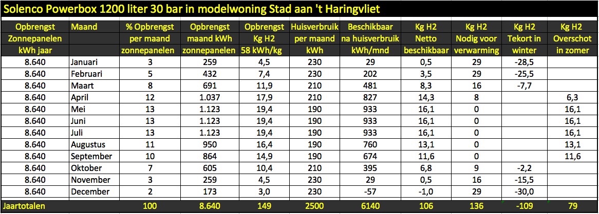En dan nog een gestorven link van 2019? En wat is daarvan geworden Interesseert mij toch even wel. Ik dacht dat Maddox alweer ging reageren maar dan zal ik het even doen, de natuurwetten zijn nu eenmaal zo. En Maddox kan deze ook niet tot in den treure herhalen, de waterstofbelievers negeren het sowieso. Soit, eigenlijk een dikke flop dat waterstofhuis met die powerbox, en gefundenes fressen voor watergate.nl. Dus ff met de grond gelijk gemaakt ~11 maand later. En een simpel vergelijk met een warmtepomp, zu en-of evtl een klassieke huisbatterij neem ik aan: https://waterstofgate.nl/Praktijk/Bu...enco-PowerBox/ Innovathuis, waterstof huis Stad aan ’t Haringvliet met Solenco PowerBox In Stad aan ’t Haringvliet is op 11 september 2019 het Innovathuis, een volledig op waterstof draaiend huis in gebruik genomen. De initiatiefnemers willen zelfs een wijk van 250 woningen bouwen die geheel op waterstof draait. Volgens producent Solenco kan een woning met hun Powerbox, een waterstof systeem, de seizoenen overbruggen en zelfs van het elektriciteits- en gasnet worden afgesloten. Dit is een pittige claim. Wij zoeken uit of de beweringen kloppen en tonen u de uitkomsten. Het finale oordeel, zou u zelf in zo’n waterstofhuis willen wonen, is aan u. Augustus 2020 Auteur: Wim Schermer Samenvatting - Het Innovathuis kan slechts één week van het jaar op waterstof draaien. 51 weken van het jaar moet het huis verbonden zijn aan het lichtnet. - Het Innovathuis verbruikt 2,7 x meer elektriciteit dan een woning met warmtepomp - De meerkosten van een waterstofhuis, bedragen 10x zoveel als een huis met een warmtepomp - Het Innovathuis zorgt voor extra CO2 uitstoot, een huis met een warmtepomp bespaart veel CO2 uitstoot. - - - - - - - - - - - - - - - Innovathuis, een eengezinswoning bevat: - Een electrolyser, die groene stroom en water omzet in waterstof - Een brandstofcel, die waterstof weer omzet in elektriciteit - Een boiler die via een zogeheten katalytische reactie warmte maakt uit waterstof en zuurstof voor warm tapwater en de vloerverwarming - Opslag voor 1.200 liter waterstof (bij 30 bar) om de seizoenen te overbruggen. - Twee batterijen van ABB, om aan snelle piekvraag naar elektrische energie te kunnen voldoen - Vloerverwarming - 30 zonnepanelen - Ventilatie met warmteterugwinning - Recirculatie douche - Energiebesparende kranen Het argument, niet in deze modelwoning, maar wel in de plaats Stad aan ’t Haringvliet om waterstof te gebruiken, is dat minder goed of slecht geïsoleerde huizen geen warmtepomp zouden kunnen gebruiken. Een matig geïsoleerd huis verbruikt makkelijk 2.000 m3 gas per jaar en 3.400 kWh elektriciteit. Vandaag de dag nieuw gebouwde woningen, zoals het Innovathuis, hebben een gasverbruik van rond 500 m3 per jaar als er een gas CV zou staan. Die woningen, nu al vaak zonder gasaansluiting, kunnen sowieso zonder waterstof en vaak zelfs zonder warmtepomp. Met een aantal infrarood panelen is de verwarming meestal prima te regelen. Wij gaan er in de verdere berekeningen van uit dat er niet 3.400 kWh elektriciteit, dit is het landelijke gemiddelde, maar rond 2.500 kWh elektriciteit zal worden verbruikt. In de woning zal op inductie gekookt worden. Dit levert een jaarverbruik van rond 365 kWh op dat is opgenomen in de 2.500 kWh. Zonnepanelen naar waterstof De 30 zonnepanelen zullen met een vermogen van 320 Wp per paneel totaal 8.460 kWh per jaar opleveren. Voor iedere kg waterstof is via elektrolyse 58 kWh elektriciteit benodigd. De zonnepanelen zouden totaal 149 kg waterstof per jaar op kunnen leveren. Omdat het huishoudelijk stroomverbruik van 2.500 kWh er vanaf gaat wordt er netto maximaal 106 kg waterstof per jaar geproduceerd. Waterstof In het goed geïsoleerde Innovathuis is ca. 500m3 aardgas aan warmte nodig per jaar, als er een CV-ketel in zou staan. 500 m3 aardgas staat gelijk aan 4.500 kWh elektriciteit. 500 m3 aardgas wordt door de 3x lagere energiedichtheid van waterstof totaal 1.500 m3 waterstof. 1.500 m3 waterstof is 136 kg waterstof. Voor verwarming is dus 136 kg waterstof per jaar nodig. Om die 136 kg waterstof met elektrolyse uit groene stroom te maken is 58 kWh elektriciteit per kg waterstof nodig. Dat kost 136 x 58 = 7.888 kWh elektriciteit. Hebben we voor alleen verwarming 7.888 kWh nodig, het gewone huishoudelijke verbruik van 2.500 kWh per jaar komt daar nog bij. De geplande 30 zonnepanelen van 320 Wp op het dak van de proefwoning hebben een opbrengst van rond 8.460 kWh per jaar. Meer panelen kunnen er niet op het dak. We hebben op jaarbasis 7.888 + 2.500 is 10.388 kWh nodig. We komen dus 10.388 - 8.460 is 1.928 kWh tekort. Verdringing Groene waterstof wordt gemaakt uit duurzaam opgewekte elektriciteit van windmolens en zonnepanelen. We hebben in Nederland nu rond 20% duurzaam opgewekte elektriciteit. Door de verliezen om van elektriciteit waterstof te maken - 30% - en van waterstof terug naar elektriciteit - 50% - is er heel veel meer duurzame stroom nodig dan bij het direct gebruiken van diezelfde duurzame stroom in warmtepompen en voor het laden van accu’s van elektrische auto’s. De stroom die tijdens elektrolyse is verbruikt is niet meer beschikbaar voor andere gebruikers en moet natuurlijk wel opgewekt worden. En dat gebeurt in … kolen- en gascentrales. Dit heet verdringing en is het onvermijdelijke gevolg van het extreem hoge energieverbruik en daarbij optredende verliezen tijdens het maken en later verbruiken van waterstof. De bedoeling is dit bij de modelwoning te voorkomen met maar liefst 30 zonnepanelen. Helaas, dit probleem gaat toch ook spelen bij onze modelwoning. Systeemkosten De route via waterstof vereist heel forse investeringen. Wij kennen de benodigde investering niet, maar een ruwe schatting levert toch al gauw een bedrag op van tussen de 30.000 en 40.000 euro voor alleen het waterstofgedeelte en de batterijen. Voor alleen de Powerbox van Solenco van zeg 10 kW is al een bedrag van rond 20.000 euro nodig. Een concurrerend vergelijkbaar