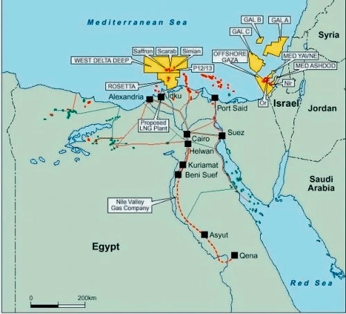 Uitgebreide gasvoorraden voor de kust van Gaza.