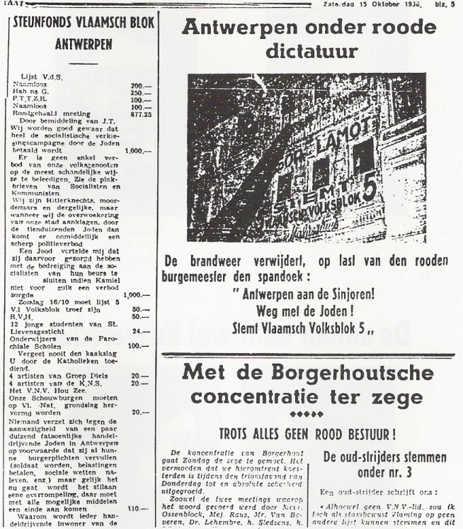 ![]() ![]() Van welke partij is ook weer de slogan : "weg met de j.... , weg met den rooden burgemeester, steun..." "wij worden goed gewaar dat de ganse socialistische verkeizingscampagne door de j... betaald wordt" etc Citaat: