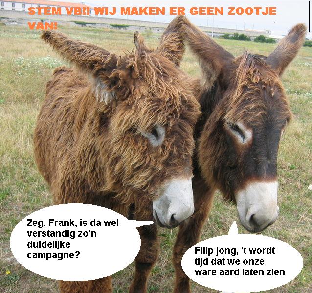 ![]() Het Vlaams Belang gebruikt apen als beeld bij haar voorcampagne. ![]() ![]() ![]() EXCLUSIEF!!: Philippe D. dingt naar "De Prijs voor Politieke Humor" Denken? Laat aan ezels en paarden, die hebben een grote kop! Citaat: