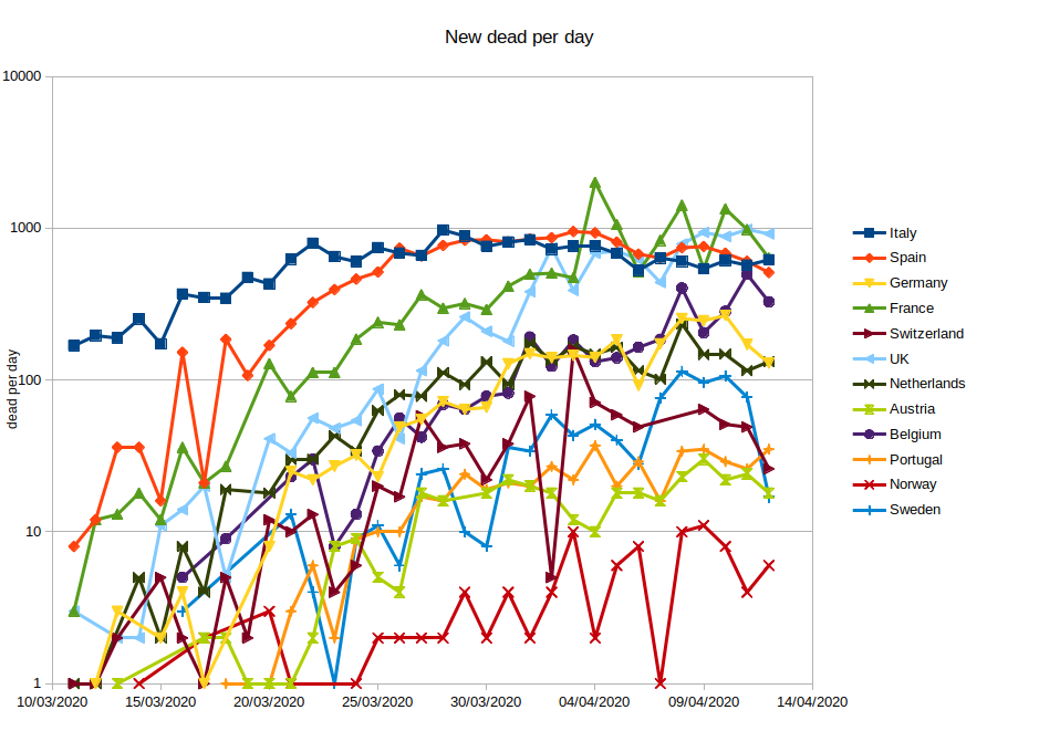 Het Belgische cijfer lijkt een ramp te zijn, zeker tegenover het Nederlandse cijfer, doch, Nederland meld enkel de bewezen coronadoden uit de ziekenhuizen, België meld elke vermoedelijke besmette doden als Coronadode, ook de doden die reeds palliatief waren en waarvan men reeds om andere reden het overlijden in deze periode had verwacht. Het Belgische cijfer moet je dus verlagen, terwijl je het Nederlandse cijfer moet verhogen om +/- in de omgeving van het juiste coronadodental te geraken. Het enige cijfer dat men echt kan gebruiken om een indicatie te hebben rond de Covid-19 besmetting en slachtoffers, zijn de ziekenhuisopnames. Maar letop ook hier zijn het geen correcte cijfers. |