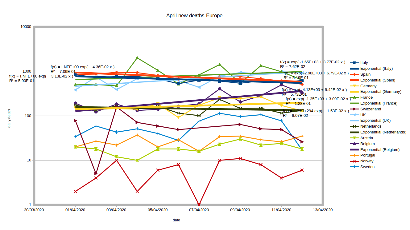 Bevestigen gewoon de eerdere tendenzen. Kijk vooral naar de tendenzen van april, die een idee geven van de post-lockdown situatie. Belgie doet het niet bijzonder "goed" als de bedoeling was van binnenkort geen gevallen meer te hebben, maar niemand anders heeft dat in de nabije horizon in elk geval. De Spaanse en Italiaanse afname lijkt zich op dezelfde wijze voort te zetten. Maw, binnenkort "enkele gevallen" zit er duidelijk niet in. Wat wel goed lijkt te lukken, is de curve plat te houden. Maar dat was normaal gezien bedoeld voor "nadien". Nu zouden we zogezegd "the hammer" toepassen, ttz, snel het aantal nieuwe besmettingen tot dicht bij nul brengen. NADIEN zouden we "the dance" doen, om dat kleine aantal klein te houden. Mislukt. Laatst gewijzigd door patrickve : 13 april 2020 om 10:23. |