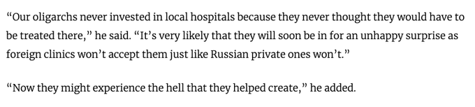 Het feit dat rijke russen de laatste dagen en weken beademiningsmachines aan het opkopen zijn voor prive-gebruik, in hun eigen familie dus, is nochthans een duidelijke hint wat de realiteit is. https://www.themoscowtimes.com/2020/...navirus-a69703 Citaat: