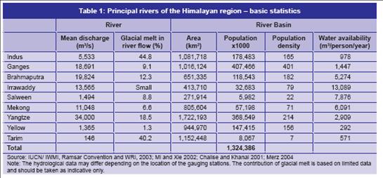 Wat betreft de bijdrage van gletsjers aan rivieren zie bijgevoegde figuur. Citaat:
