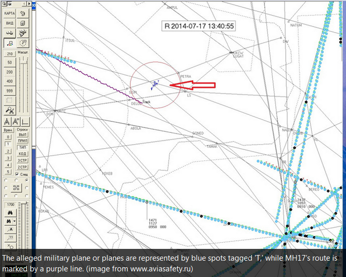 Ik heb de afstand berekend tussen die twee objecten en ik kom op 50 km. Hier zou het zogezegd om een MIG 29 gaan. Er is maar één air to air luchtdoelraket die zo'n afstand kan overbruggen en dat is de R-77 radar geleid. De inslag volgens die foto zou dan aan de achterzijde moeten gebeuren. Perforatie door boordkanonnen is hier uitgesloten. Hoeveel versies hebben we al niet gekend. Ben benieuwd wat ze morgen gaan uitvinden.