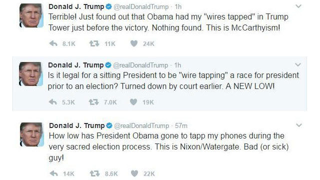 |   De leugensneeuwbal wordt te groot en begint te smelten... http://www.telegraph.co.uk/news/2017...q-wiretapping/ Nu ja, de Trumpisten zijn toch al klaar voor het volgende schandaal-zonder-bewijzen om het vorige door te spoelen  |