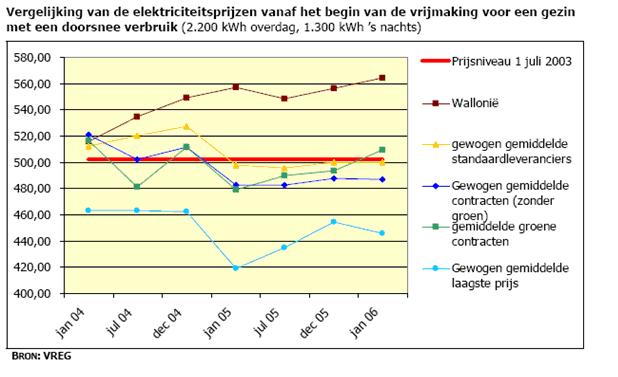 Vergelijk vooral Wallonië met de andere. In Wallonië wordt de elektriciteitsmarkt voor huishoudens pas geliberaliseerd op één juli.