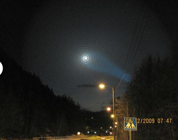 Nee , even serieus nu, ik vind het een intrigerend en zeer imposant verschijnsel dat tot nu toe voor zover ik weet niet bekend is. Ik zou er het fijne van willen weten. Voor zover ik weet is er niet direct een verklaring voor alle waargenomen feiten. Het is een reusachtig draaiende spiraal die een blauw licht achterlaat. Het ziet er meer iets uit voor een science fiction film. Behalve dan dat dit wel echt is.