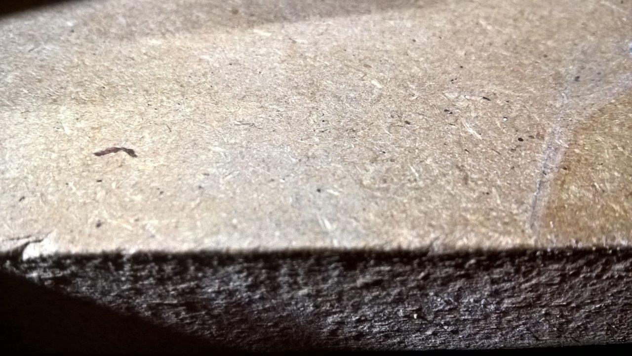 bij mij is het opgespoten karton met een lak laag over, ook gene beuk , kers of kokobolo.