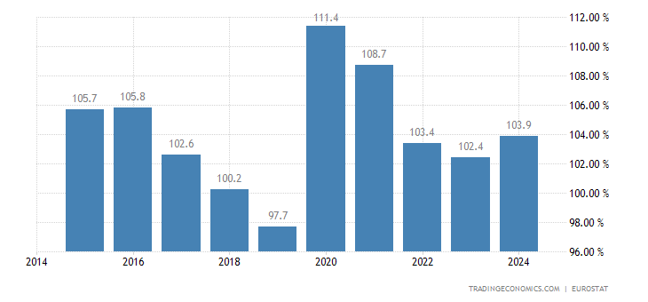 Onder Di Rupo ging het van 102 naar bijna 107. Onder Charles Michel I zie ik een lichte (toch nog steeds te kleine) daling. Het hangt er natuurlijk wel van af hoe de grafieken zijn opgesteld. Toont bijvoorbeeld de kolom '2014' de staatsschuld aan het begin van 2012, aan het einde of gemiddeld over heel 2012 genomen? Laatst gewijzigd door TheFourHorsemen : 13 juli 2017 om 10:52. |