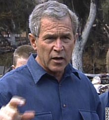 President Bush is in ieder geval het gebied gaan bezoeken om zijn steun te betuigen aan de getroffen bevolking. Bush tours fire-ravaged Southern California ![]() [size=2]Bush speaks to reporters Tuesday in California. [/size] |